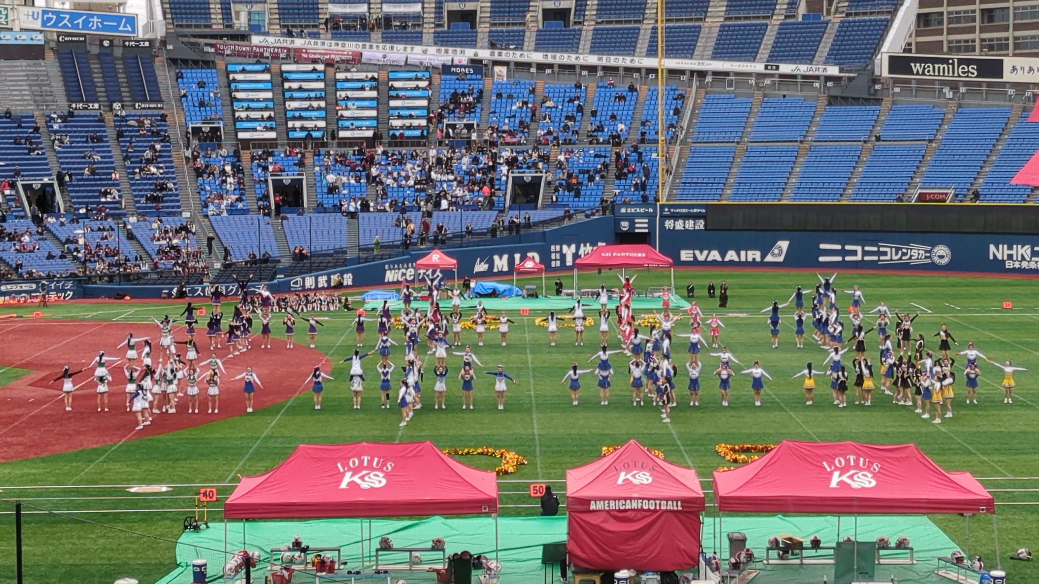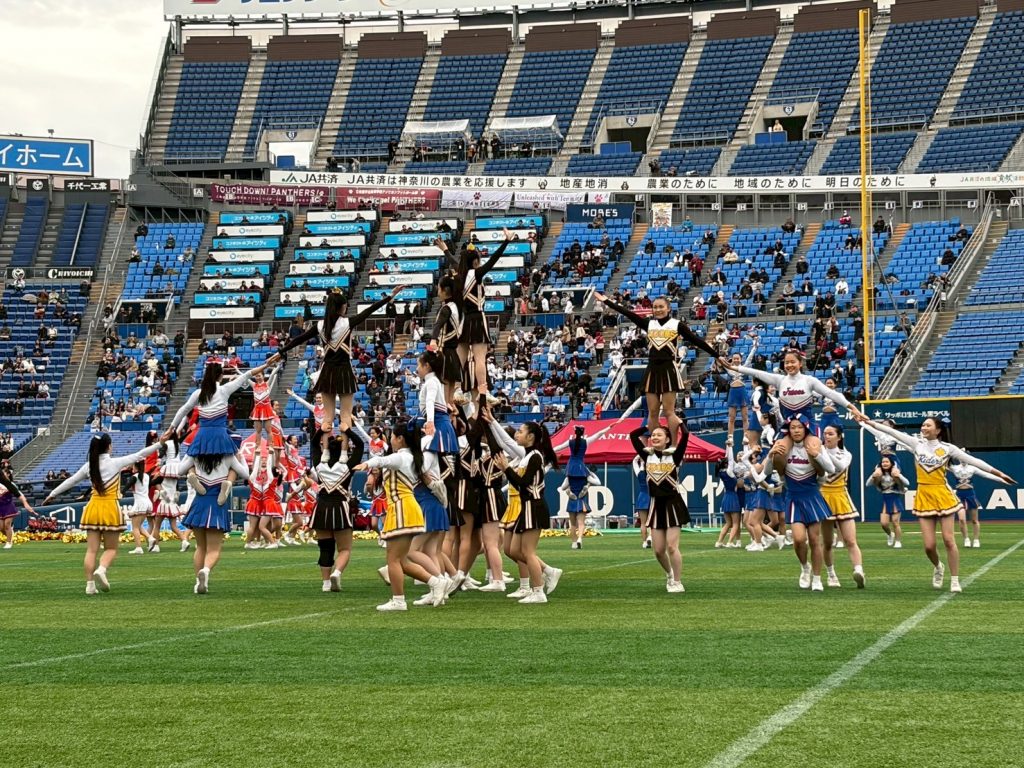 本演技には13校・約200名のチアリーダーが参加し、高校アメリカンフットボールの頂点を決する決勝戦という、非常に光栄で貴重な舞台で演技を披露することができました。